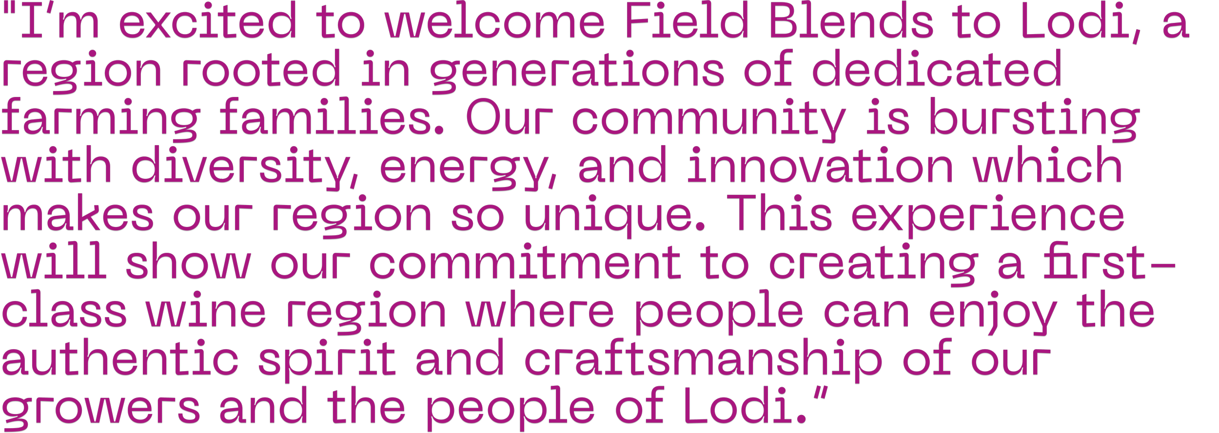 Gerardo was always drawn to his heritage—the grandson of Mexican immigrants who came to California in the 1940s, worked the fields, saved their money, and purchased property and planted grapevines. Inspired by his family's legacy, Gerardo began making wine from their vineyards, launching his own label, Anaya Vineyards. In 2015, he co-founded Lodi Crush, a custom winemaking facility that has since become a cornerstone of local business. As Community Partner for Field Blends: Lodi, Gerardo’s collaborative approach and commitment to fostering connection will spotlight that Lodi isn’t just a place where grapes are grown and wine is made; it’s a community where history, creativity, and heritage come together in every glass..